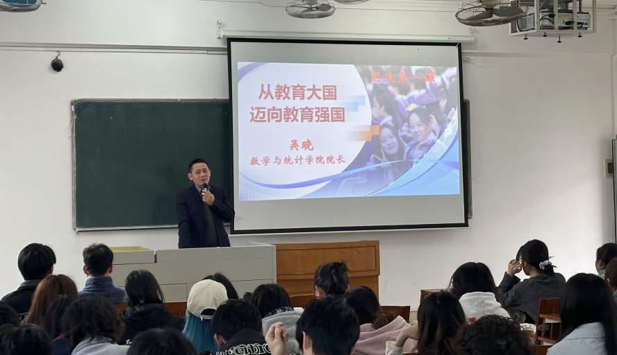 3月18日下午,吴晓院长在第二教学楼504教室,为2021级应用统计学专业1班和2班的同学们带来了一场别开生面的思政第一课。课堂上,吴院长紧密结合专业特点,以独特的视角,引导同学们深入思考专业学习与国家教育发展之间的紧密联系,激发了同学们对专业知识的学习热情以及为教育事业贡献力量的责任感。