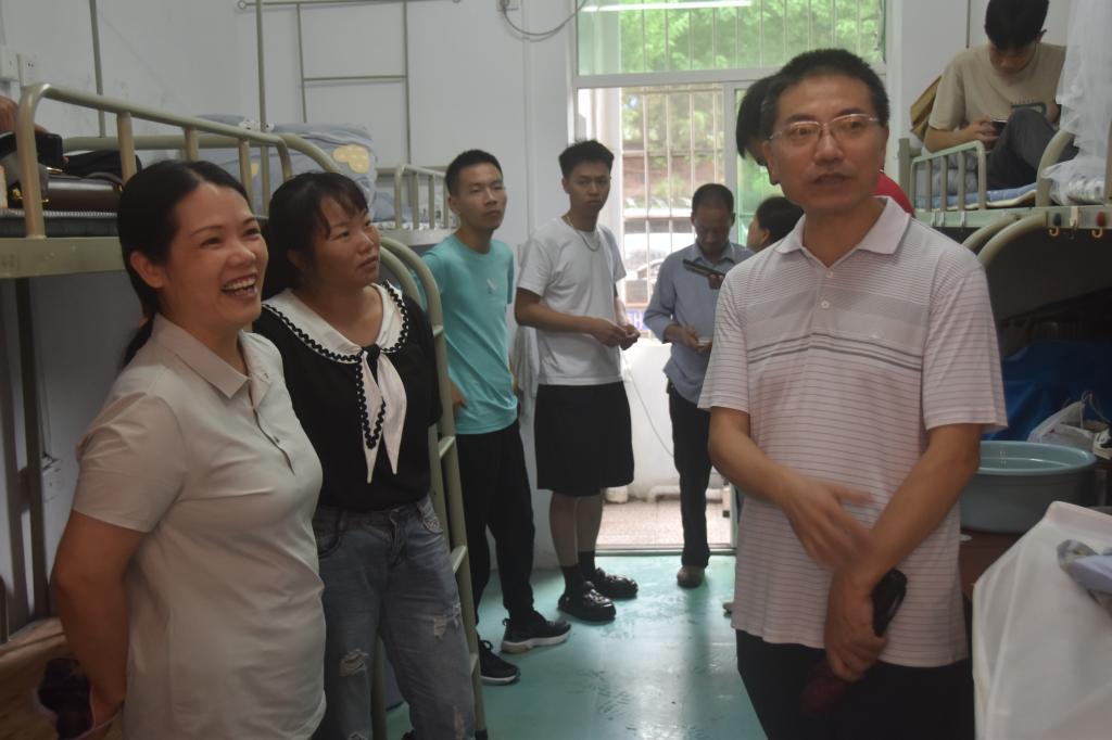 学校党委书记谢冠华、学校副校长肖起清等校领导以及学校有关职能部门负责人一行到迎新大本营作工作指导,了解新生到校情况,并深入学生宿舍同新生和新生家长亲切交流,关怀他们的开学准备情况。我院党委书记杨帆和院长朱智伟携同学工团队、班主任走访2023级新生和研究生宿舍,了解他们入住情况,关心学生们身心状态。