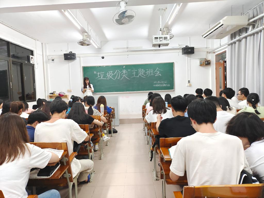 我院2019级、2020级、2021级每班级开展生活垃圾分类主题班会,一名班委作为主讲人,组织学生观看生活垃圾分类相关教育宣传片,科普生活垃圾分类的相关知识。在开展完主题班会后学生们完成《垃圾分类知识测试题》检验学习成果,并以班委代表签名《生活垃圾分类倡议书》,以倡议、潜移默化的方式帮助学生树立分类意识。