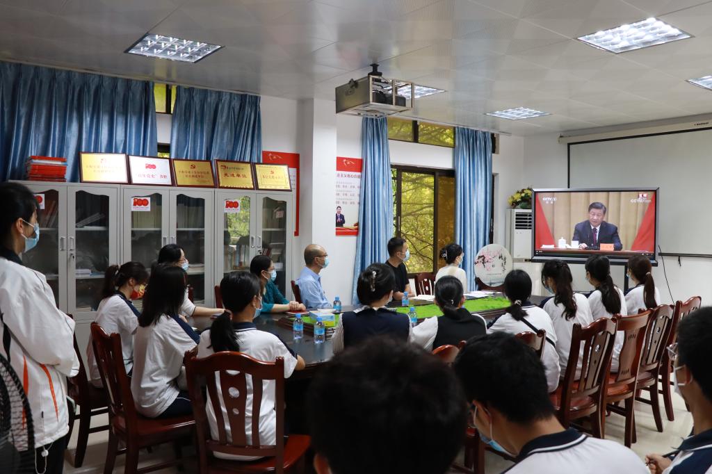 必赢线路检测中心党委书记杨帆、党委副书记高洁云作为学院的领学人,在系办308和院师生代表一起观看大会直播并作出指示要求。党委书记杨帆强调教师工作中必须坚持为党育人,不断深化巩固党史学习教育成果,创造性开展工作。党委副书记高洁云教育学生团员们要对标“自觉担当尽责”的要求,成为永久奋斗的先锋力量。院学生会主席团成员黄敏贞主动分享观看视频后的心得体会,表示会立下坚定的目标,树立清澈、纯粹的形象,全心全意为同学服务,建设清新的学生会。