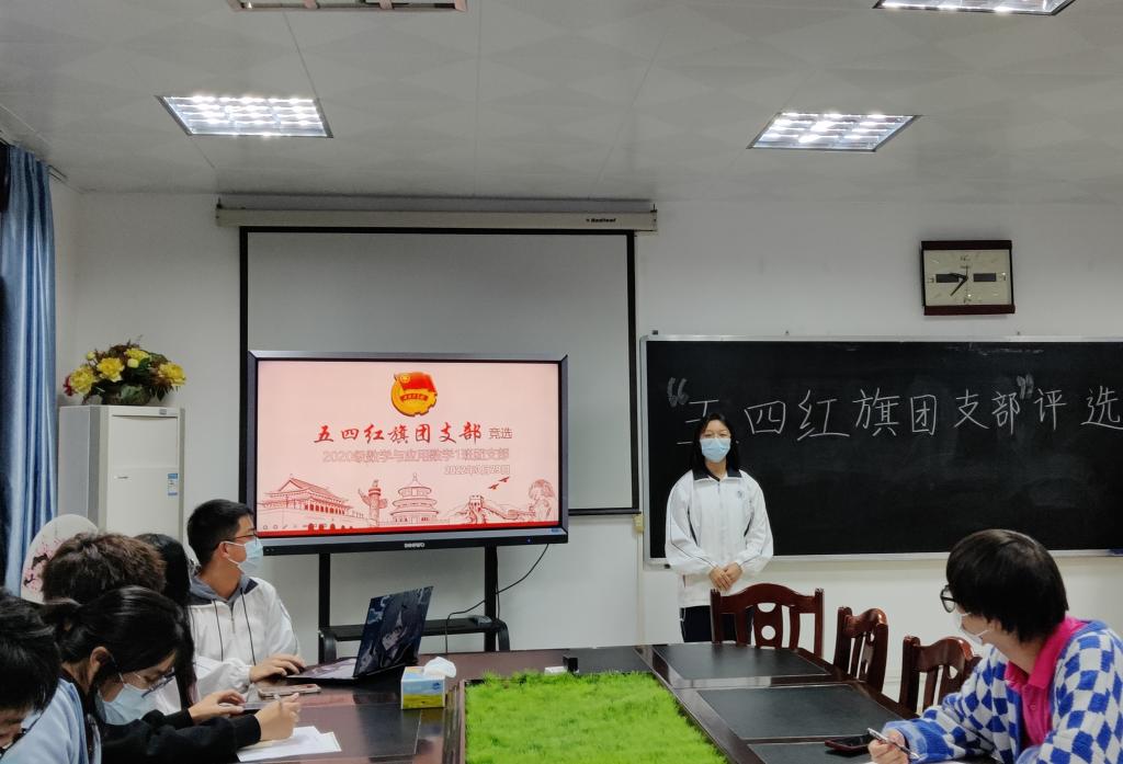本次活动共分为奏唱团歌、团支部风采展示、学院团委书记总结发言三个环节。随着慷慨庄严的团歌的奏响,“五四红旗团支部”评选大会正式拉开帷幕。本次参评团支部共有10个,其中19级6个,20级4个。在此次会议中,各团支部代表均以严谨认真的态度介绍其团支部的思想教育类、学风和组织建设类以及社会实践类等各项实际情况,所展示的每一项奖项,都是他们在校园里焕发的光彩;每一份合照,都是班集体团结凝聚的体现。在各评委的严谨评分后,评选出2021-2022年度一个优秀团支部:2020级数学与应用数学1班团支部。