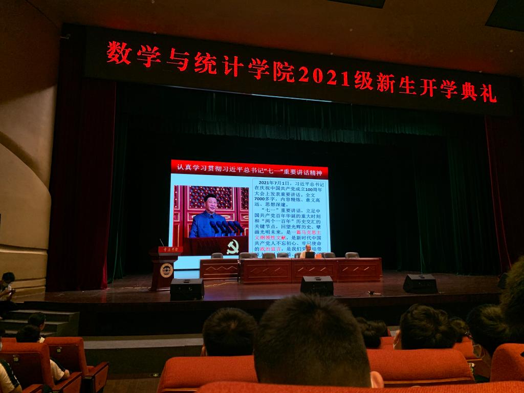 第三个模块是教学管理和专业教育。必赢线路检测中心副院长符和满作五大专业的概括,孔丽英老师、谷泽老师、柏萌老师、程从华老师分别为数学与应用数学专业、金融专业、应用统计学专业的新生作了详细专业介绍。通过专业教育,2021级新生们增加了专业认同感,也更加明确了自己为之奋斗的努力方向。
