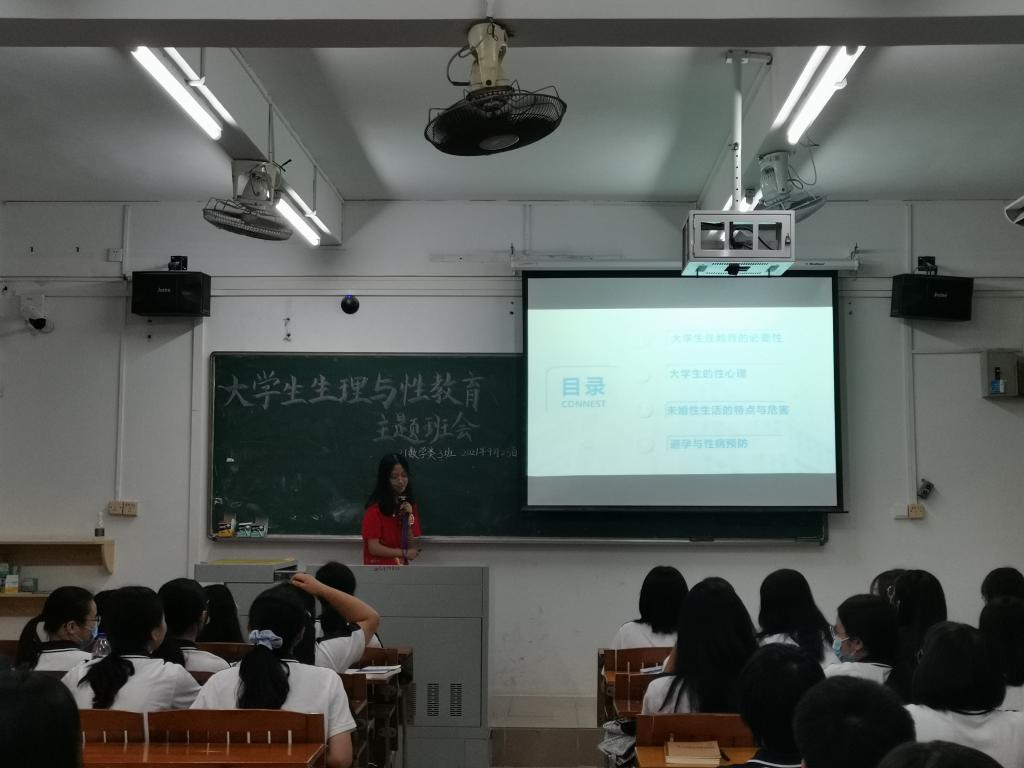 第五个模块是大学适应和心理健康教育,包含了辅导员曹阳开展的“大学适应与心理健康教育”的专题讲座,带班们开展的“大学生生理与性教育”的主题班会以及配合学校统一部署安排完成2021年秋季心理普查测试。通过讲座及班会提高了新生们对心理健康的认识,促进同学们正确认识自我。