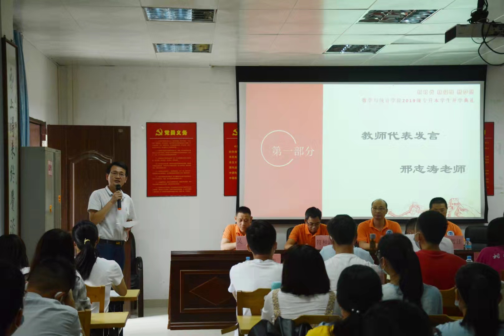 在2019级专升本学生开学典礼上,朱智伟院长向新生们详细介绍了学院,吴晓副院长提醒新生们要把握时光,明确目标,规划未来,以新面貌对待新生活。邢志涛老师强调同学们能够团结友爱并向党组织靠拢。旧生代表杨佩欣则建议在学习上要“珍惜时间,取长补短”。新生代表黎坤说到“学习是首要任务,大家都要刻苦勤勉”。