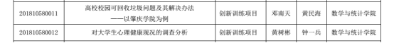 我院高度重视创新创业工作,专门成立大创项目筹备组,由学院党委牵头、积极组织引导我院师生参与创新创业项目申报。在2018年大学生创新创业训练计划项目申报工作中,我院共提交上报了16项作品,共计10名老师及90余名学生参与。近日经学校评审,我院共13个项目获得校级立项。其中由黄民海教授指导《高校校园可回收垃圾问题及其解决办法-以我院为例》及钟一兵副教授指导《对大学生心理健康调查情况分析》获得推荐申报国家级项目;钟一兵副教授指导《肇庆市工业发展对环境影响研究》、邹小林副教授指导的《肇庆府城复兴项目对肇庆旅游业影响研究》、徐勇老师指导《空间箱》共三项获得推荐申报省级项目。