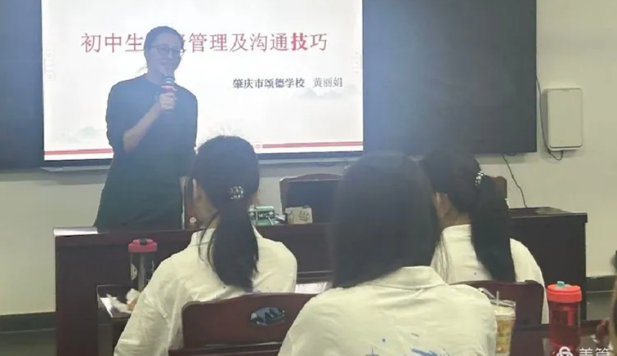 2024年11月16日上午,我们有幸邀请了肇庆市颂德学校的黄丽娟老师,为数学卓越教师班带来了一堂精彩纷呈的课程——《初中生班级管理及沟通技巧》。此次课程,黄老师围绕着七个板块生动详细地指导我们如何在初中阶段有效管理班级,具体包括:一、以班为荣,增强归属感;二、定好班规;三、反复抓常规;四、营造浓厚学风;五、家校合作;六、带动科任老师;七、正向激励。