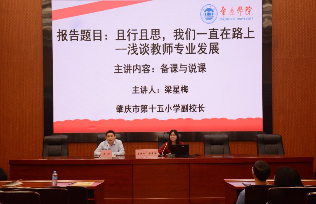 2021年4月21日下午我院于福慧图书馆报告厅举行了两场关于指导应聘中小学数学教师以及教师专业技能发展的讲座。参加此次讲座的有主讲人叶加坚主任与梁星梅副校长、我院吴晓副院长以及17、18级数学与应用数学的同学们。
